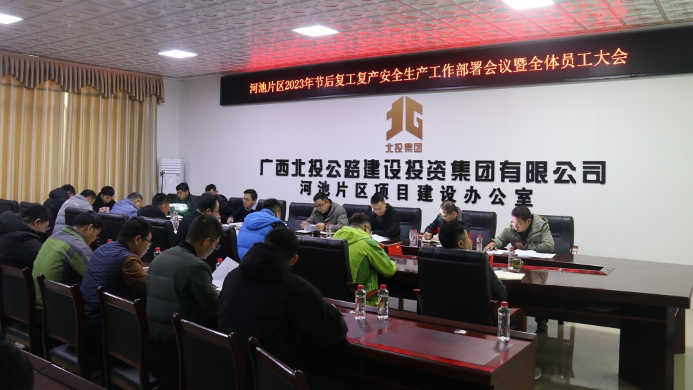 2月14日,北投公路集團河池片區召開2023年節后復工復產安全生產工作部署會議暨全體員工大會,建設辦全體員工及各參建單位相關人員參加會議。