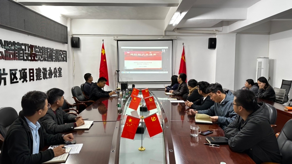 圖為建設辦組織員工觀看消防安全教育培訓現場