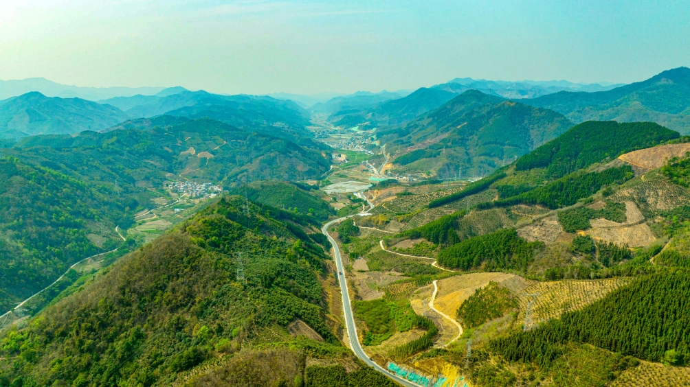 田定路那囊一號高架橋穿過大山深處的村落