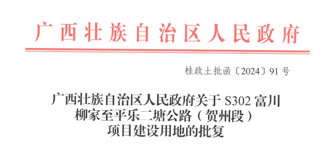 圖為S302富川柳家至平樂二塘公路(賀州段)項目建設用地批復